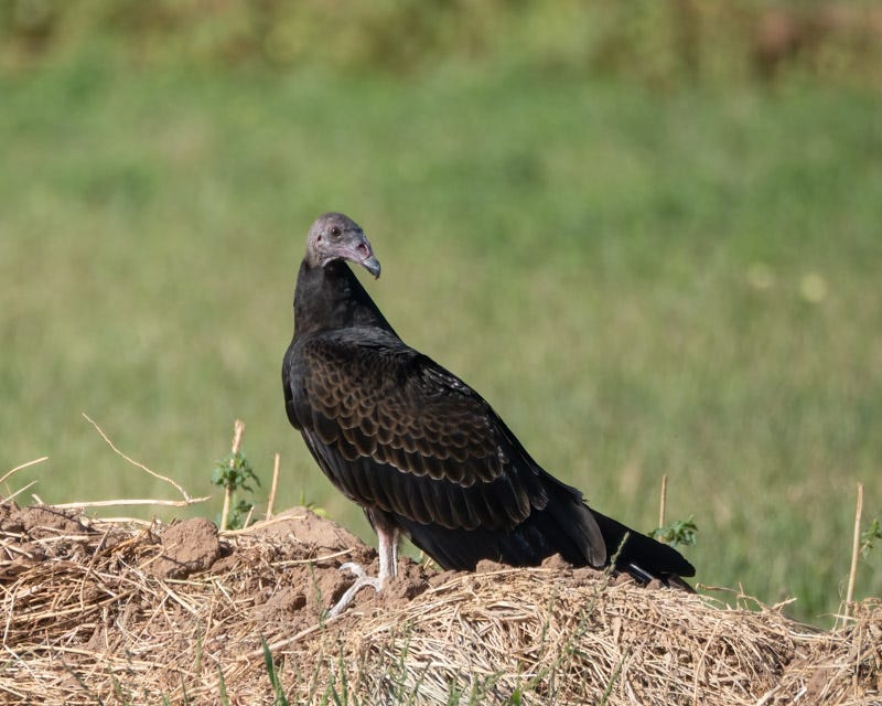 Turkey Vultures are an under-appreciated bird species. Because many people consider these birds' diet of dead animals as disgusting, people don't take the time to learn about this resourceful scavenger. Adult Turkey Vultures have a featherless, red head. The heads' similarity in appearance to a Turkey's head is what contributed to their name. However, a juvenile Turkey Vulture (TV) will have a gray/black head.
