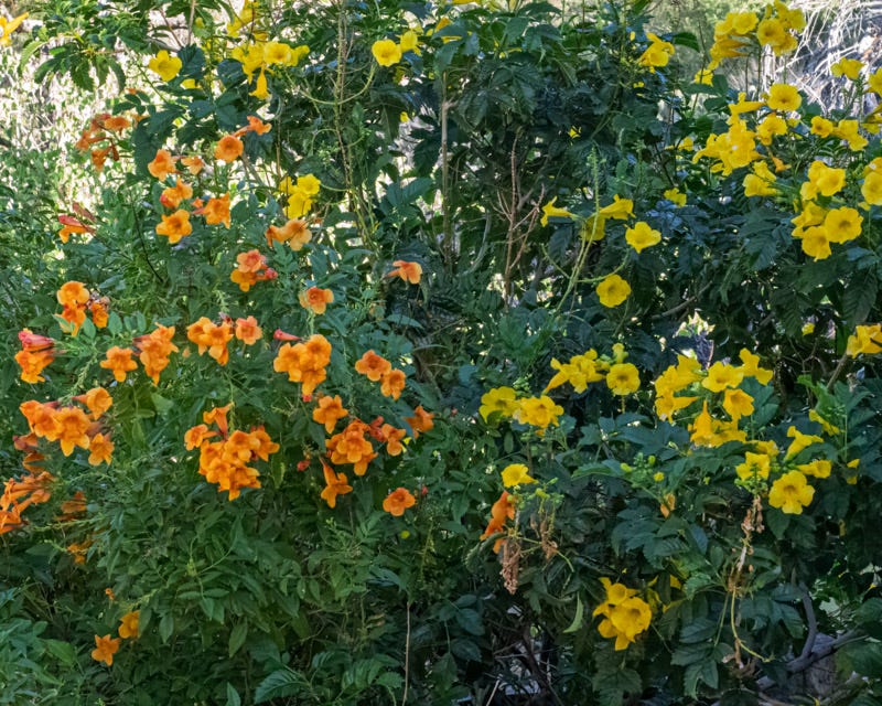 This hot summer has been tough on most of the potted plants in my yard. They have been just trying to survive in this heat. Now that the daytime temperatures have finally dropped into the comfortable 90’s and the nights are cool, I’m seeing very many flower blooms. Enjoy this big splash of color! (and please let me know if you know the common name for a flower that I identified incorrectly)