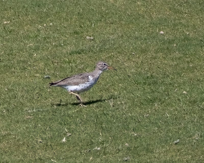 There are a few Spotted Sandpipers that spend most of the year at this course. The birds only get their "spots" during breeding season. Often, these wintering birds are gone by this time of year but the Spotted Sandpipers we saw on Monday were showing their spots.