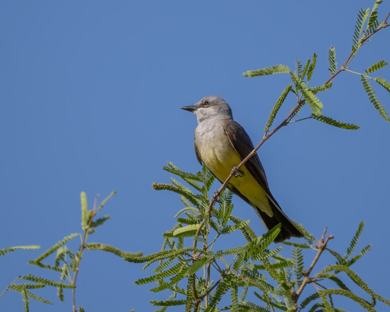 A new arrival was a pair of Western Kingbirds. Among other similar looking flycatchers which summer in our area, the Western Kingbird has a gray head and a light yellow belly. A distinctive characteristic is the white outer tail feathers. You can see them from the angle of this photo.