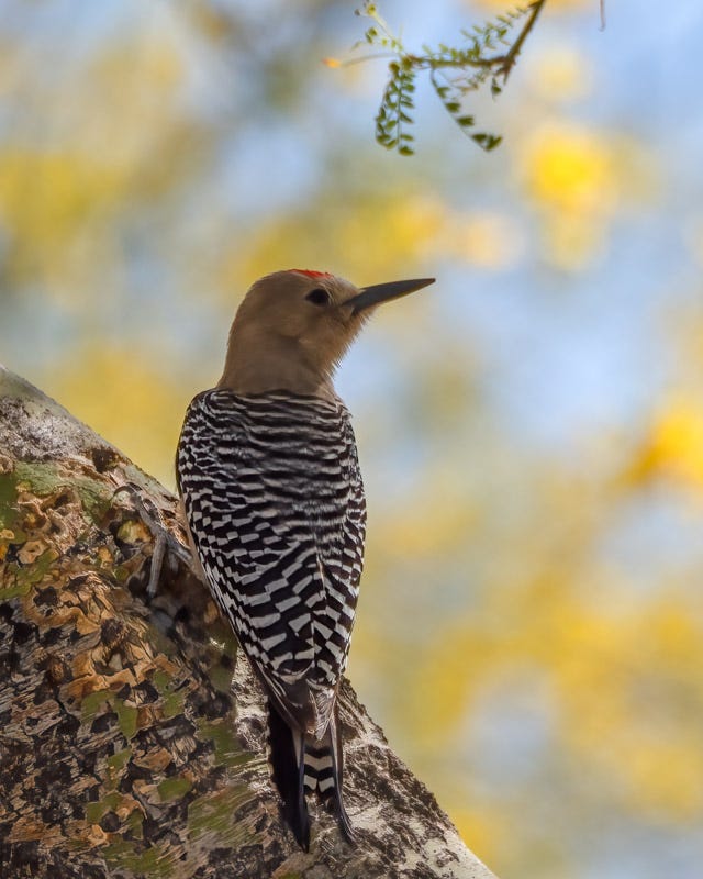 Gila Woodpeckers are the most common desert woodpeckers in our desert. This one was searching for food on a large palo verde tree.