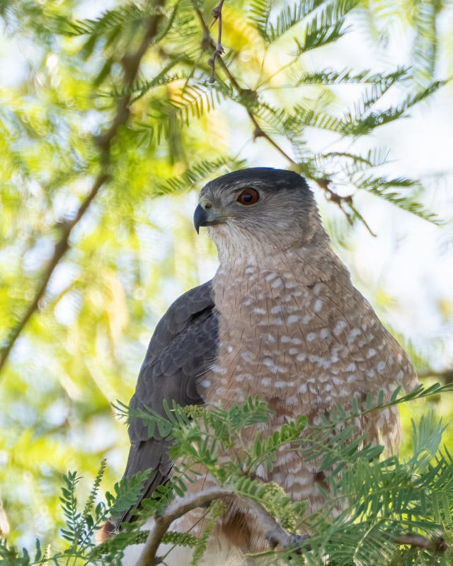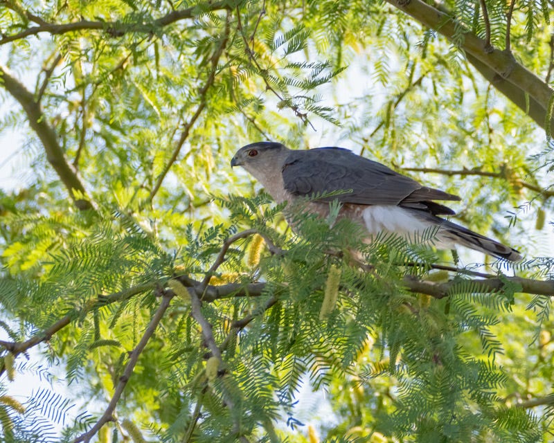 One Cooper's Hawk was very alert. It seemed less concerned about our presence than it was about the presence of the Black-crowned Night Herons.