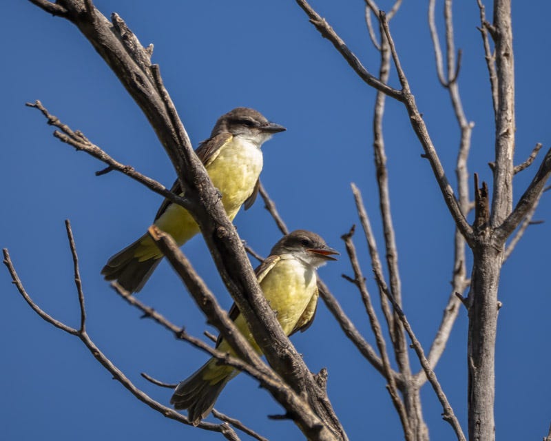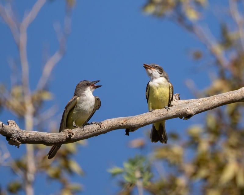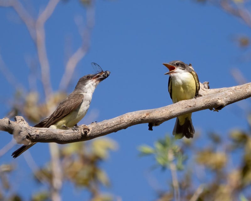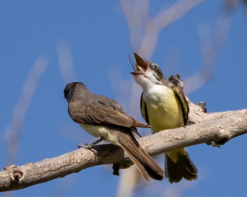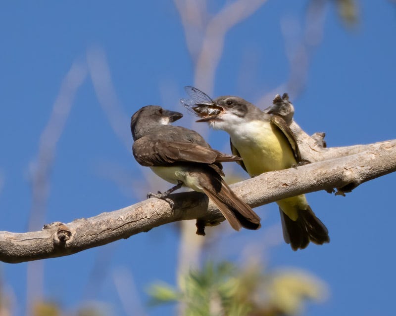 This species of Kingbird has not been studied well, so there is little information about specific behaviors compared to what we know about other Kingbirds. Still, it is yet one more interesting summering species here in Southern Arizona. Soon, these young Thick-billed Kingbirds will be hunting on their own and then the entire family will head back south for their winter in Mexico.
