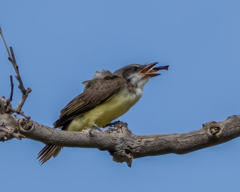 The young Kingbird never seemed to swallow its snack and relax. It continued to react with an open bill.