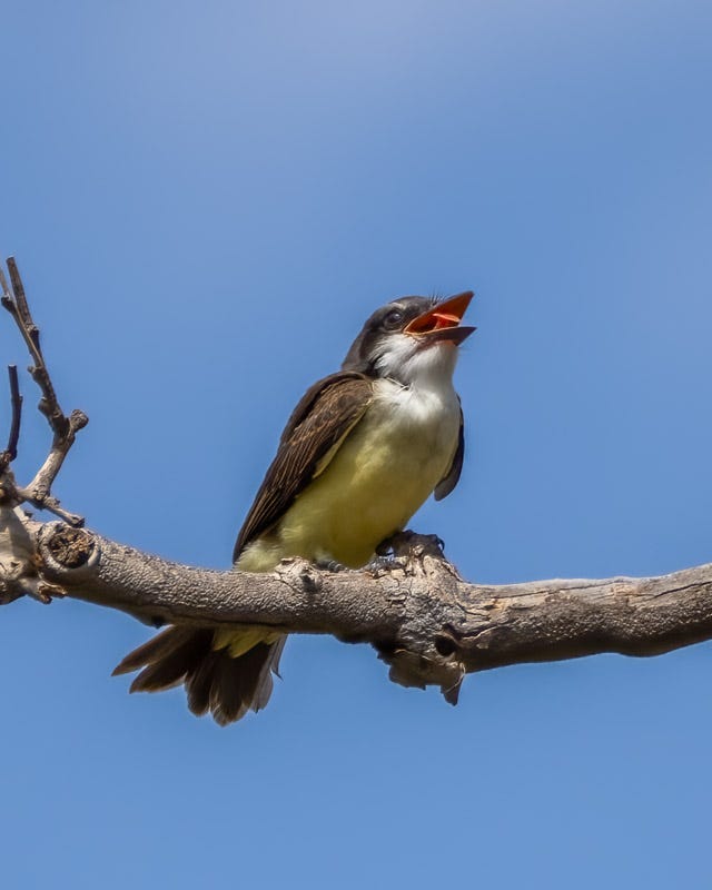 And then, the young Thick-billed Kingbird relaxed and began waiting for the next food delivery.
