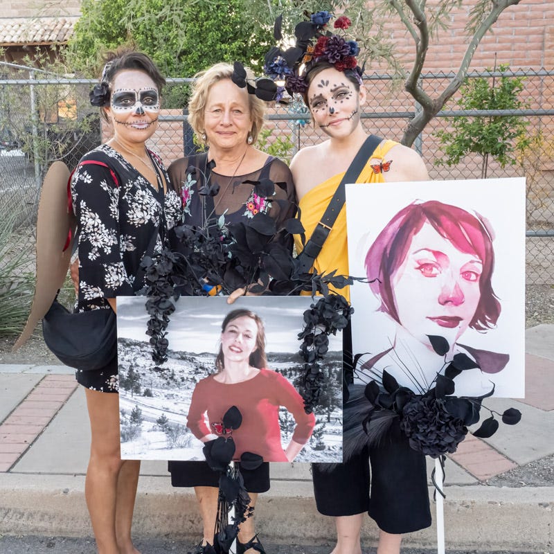 Odaiko Sonora is Tucson’s Japanese taiko (drumming) group that performs at the end of the Procession. It is said they are the heartbeat of the Procession. Their participation is inspired by the Japanese Buddhist Ancestor festival and incorporates aspects of that festival. This year’s ‘masks’ were inspired by Kitsune, supernatural Japanese Fox spirits.