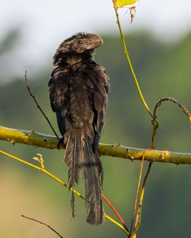 This Smooth-billed Ani may have had a smooth bill, but its tail feathers were pretty tattered. I’m sure this bird will drop those feathers at some point and grow new ones. You can learn more about these Ani from the Audubon bird guide here. https://www.audubon.org/field-guide/bird/smooth-billed-ani