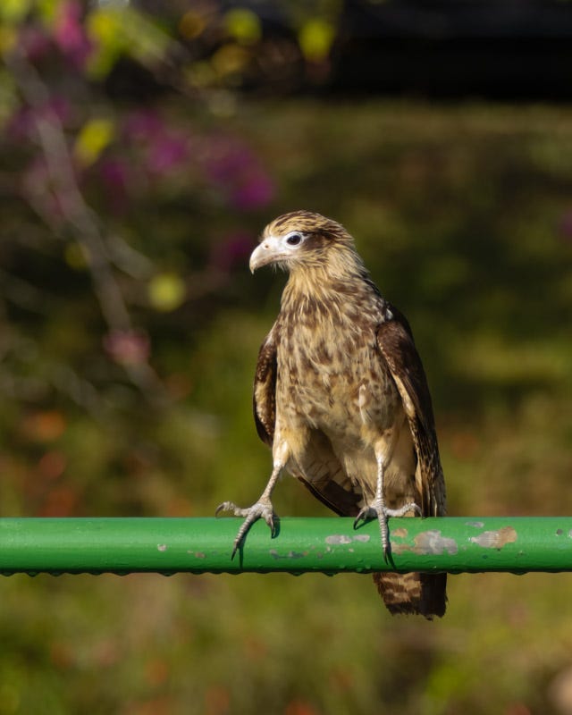 As the boat docked, there were a number of juvenile Yellow-headed Caracara on the ground and on the rails. I thought it was so unusual to see raptors so “tame” around humans. They may have been looking for scraps of fish from other fishing boats. Who knows, but it was fun to see them.