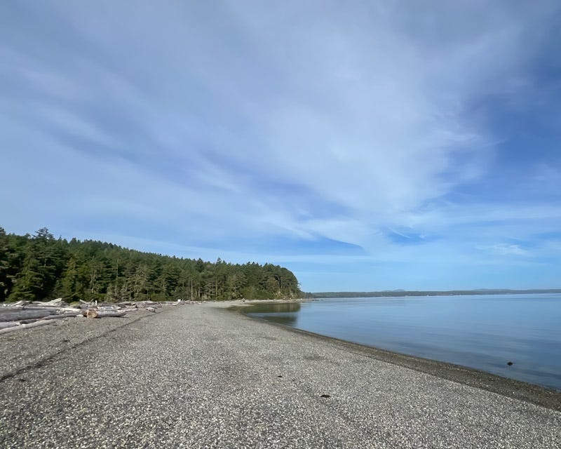 4th of July Beach was empty. Most of the island's beaches were rocky, unlike the sandy beaches of southern California that I am more familiar with. This beach got its name during the Pig Wars, when Americans and the British were both contesting ownership of the island. In 1859, the American Tax Collector on the island flew an American Flag on this beach just to annoy the British. The Pig War was a standoff in 1859 between the United States and Great Britain over ownership of the San Juan Islands. You can learn more about this war here or here .