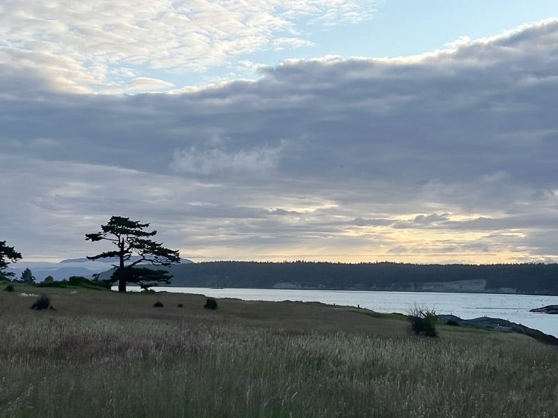 Just beyond the lighthouse and around the corner of Cattle Point, this tree caught our eye. Lopez Island is across the waters called Cattle Pass.
