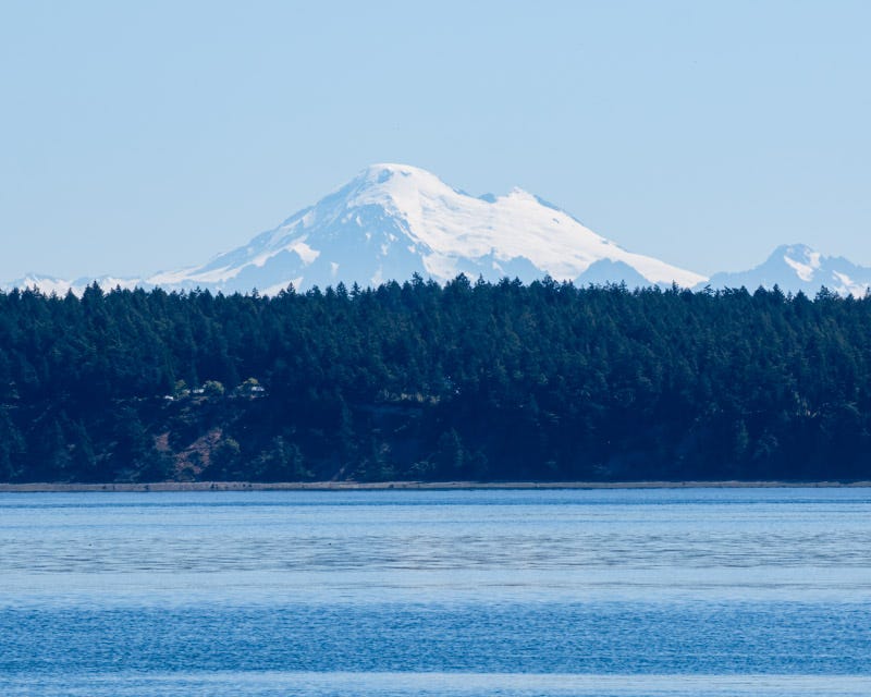 West of the island, and looking across the water and past Lopez Island, was Mount Baker. At over 10,700 feet in elevation, it is covered in active glaciers.