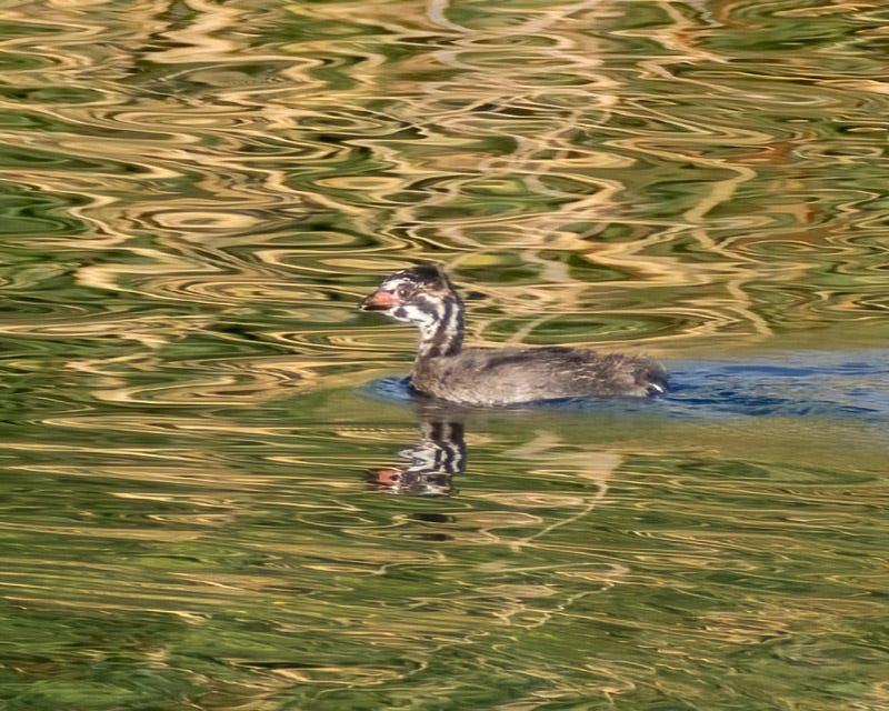 This being breeding/nesting season, there were young birds everywhere. This is a young Pied-billed Grebe. I like the zebra looks of their face at this age.
