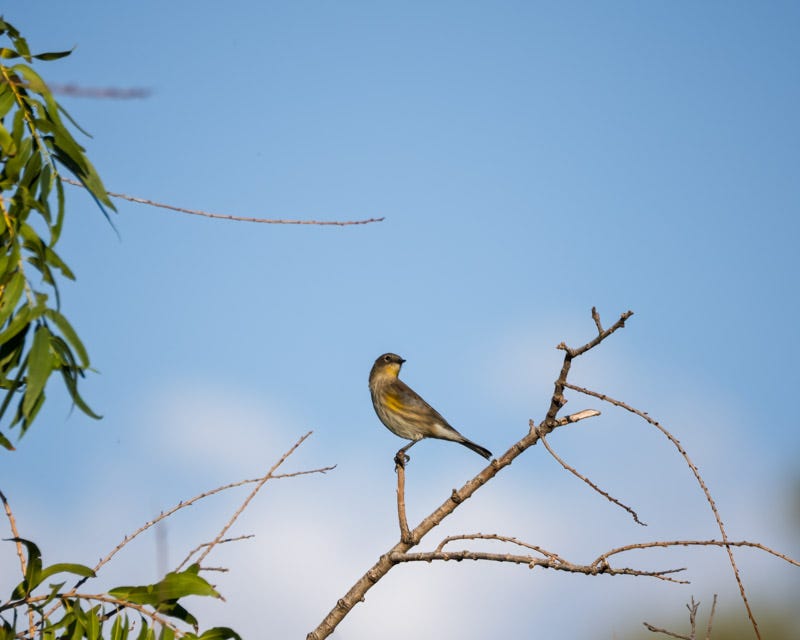 Sometimes it is nice to see a sharp close-up or portrait of a bird. Sometimes seeing it from a distance gives us a better sense of environment and place. Today’s post features some shots of birds that were at El Rio. While I was intent on photographing larger birds like the Egrets and Herons, these smaller, ‘normal’ sized birds grabbed my attention. The Yellow-rumped Warbler is here for the winter.