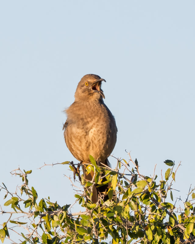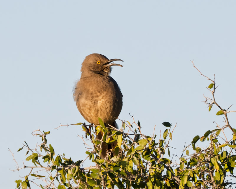 The bird was singing very loudly as Curve-billed Thrashers do. Often their territories can cover several acres and this Thrasher was making certain that all birds within hearing range knew he was there.