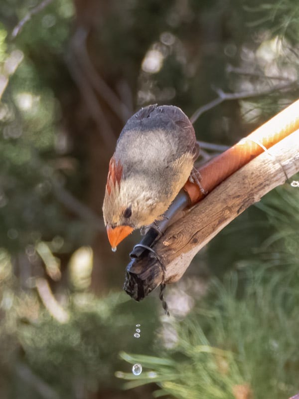 Meanwhile, other birds were satisfied to drink from the water features on the ground below. It was all individual choice. In our desert, some birds can survive without drinking water as Birdnote shares. Still, in southern Arizona having water out for birds helps so many to survive.