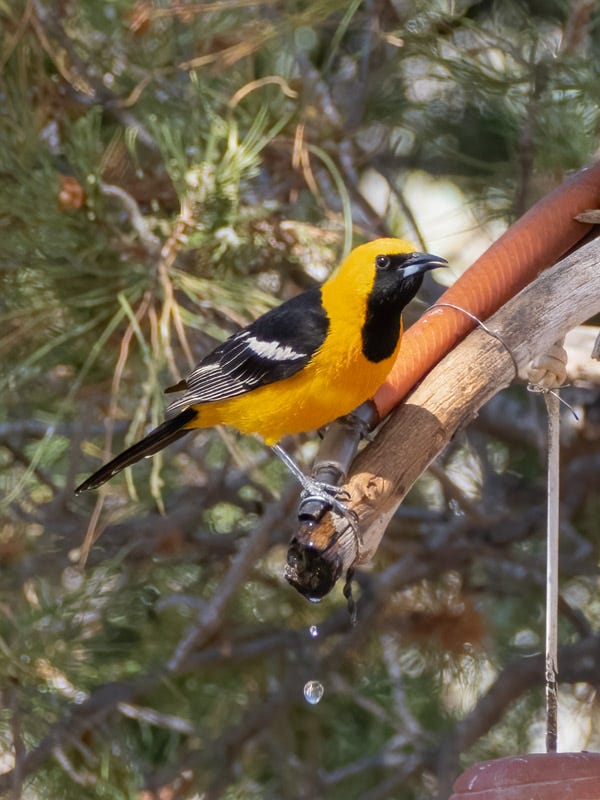 After making sure there was nothing around to bother it, the Hooded Oriole dipped his head to drink.