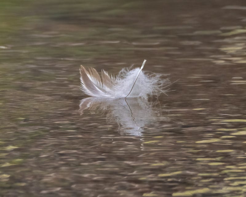 In between bird sightings, we watched the water flow and listened to the birds in the trees. At one point, a feather floated down in front of us and landed in the water.