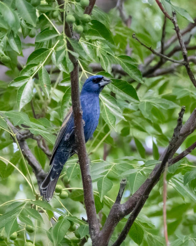Finally, there was just one Blue Grosbeak. Blue Grosbeaks spend their winters in Mexico and Central America but many come into the southern half of the United States during breeding season each summer.