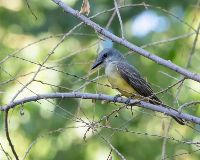 A Tropical Kingbird flitted back and forth nearby. It was often obscured by branches but occasionally it presented itself. Tropical Kingbirds are one of several kingbirds and flycatchers seen in southern Arizona during breeding season. Although very common in tropical areas throughout Central America and South America, it can be found in the US only during breeding season and then only in southern Texas and Arizona.