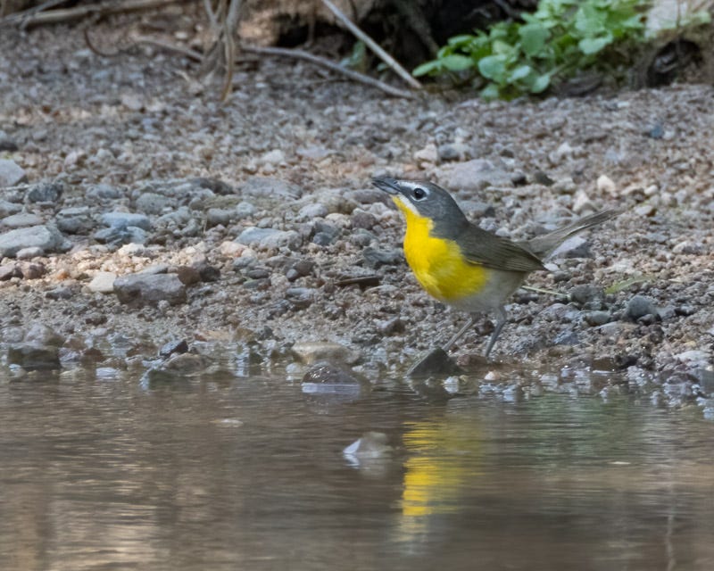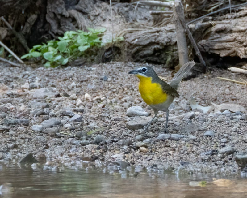 I was excited to see a Yellow-breasted Chat appearing by the water. These birds are another summer visitor and are known to be very skulky. Theyrarely appear out in the open but they make their presence known with a distinctive sound.