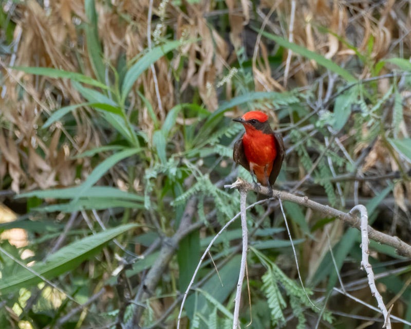 I expect to see Vermilion Flycatchers throughout town in every park and school yard and field. That makes it a treat for me to find these birds in their true natural environment. This Vermilion was hunting from the creekside willow trees. We also saw female and immature Vermilions in the time we were there.