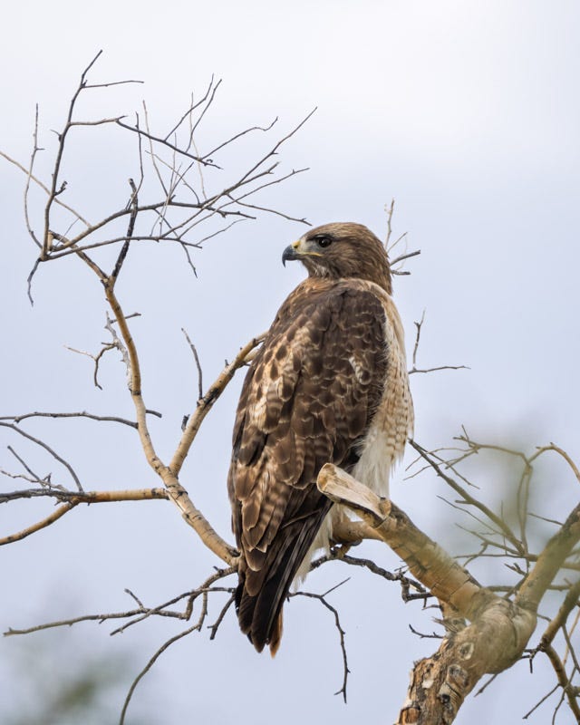 We also spotted a good old Red-tailed Hawk. It, too, thought it was not warm enough to take off so it stayed alert but remained on its perch as we slowly drove by.