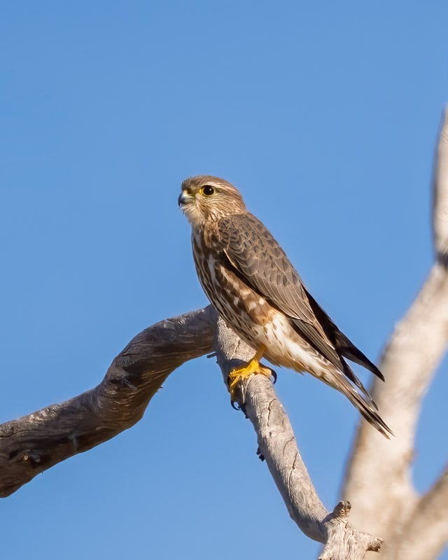 Among the raptors we saw, my favorite may have been this Merlin. We don’t have Merlins in southern Arizona during summers but during the winter, a number of these falcons come to our area. Falcons, including this Merlin, use powerful speed to catch their prey. I don’t see Merlins often so this was a real treat to see. Birdnote shares more about this species.