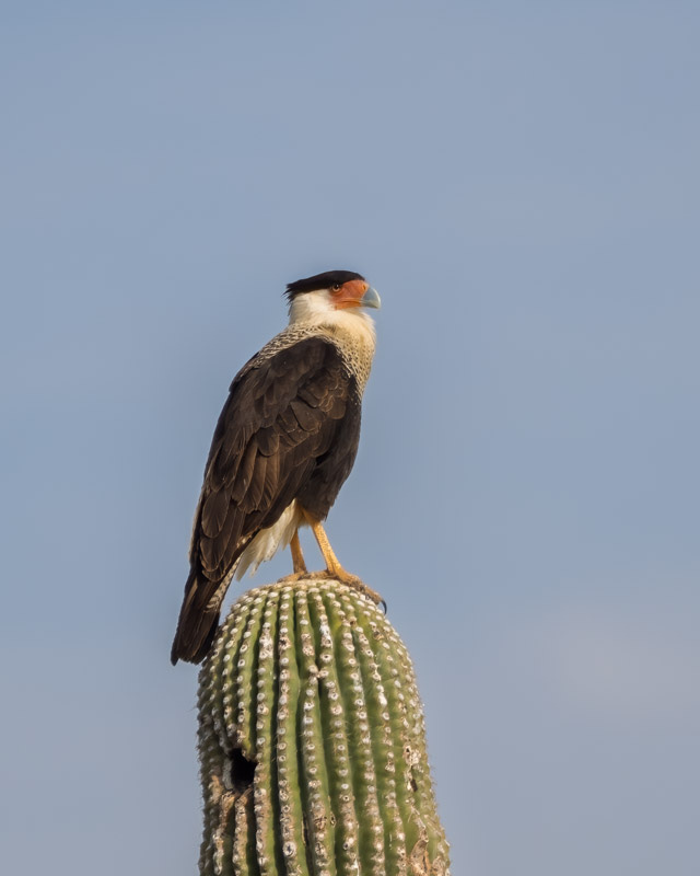 This is a close-up of one of the Caracaras that was sitting atop the saguaro.