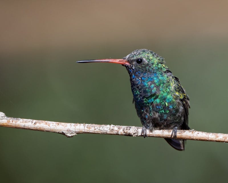 At this time of year many juvenile hummingbirds are part of the large migration. A young male Broad-billed Hummingbird, hatched this spring, will just now be getting some colorful throat feathers in. You can see a hint of blue on the chin of the Broad-billed Hummingbird below.
