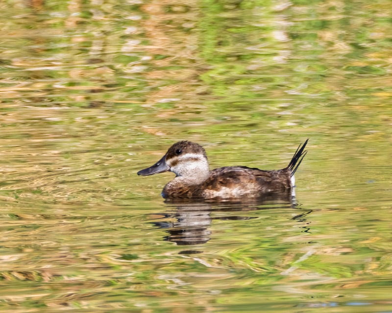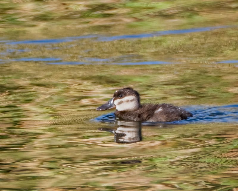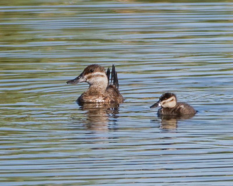 There were a number of young ducklings swimming near that female Ruddy Duck. The ducklings have the same facial pattern that their mother duck has.