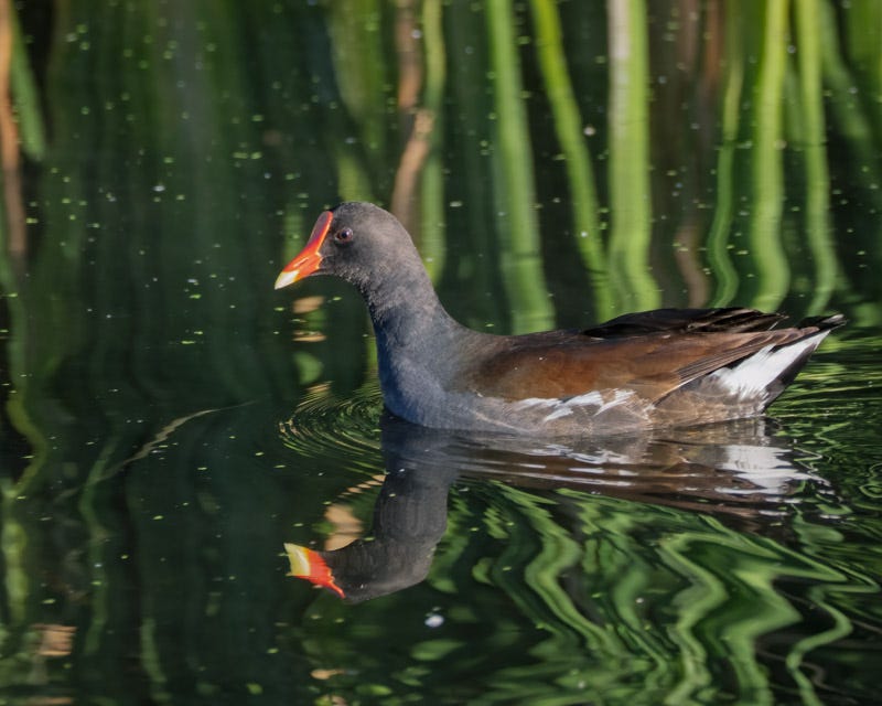 Another nice bird was this Common Gallinule. Common Gallinules are marsh birds whose bright red facial shield is notable. With the orange tip, that beak reminds me of candy corn. Matt Griffiths, with Tucson Bird Alliance, has some good information about Common Gallinules.