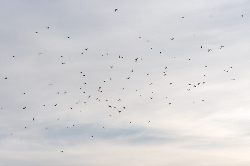 The Robins at Sewailo would all settle into the trees, call each other for a few minutes, and then take off into the air, circling around. We thought that perhaps that flock had just arrived from a night’s migration. The photo below is just a portion of the flock. We watched this flock’s pattern of behavior for a while: flight, settling into a strand of trees, calling to each other, and then taking off into flight again. Eventually we moved on but this was sure a nice sign of winter for us.