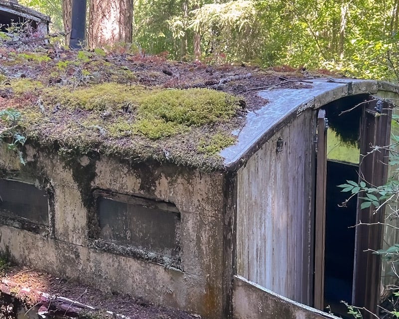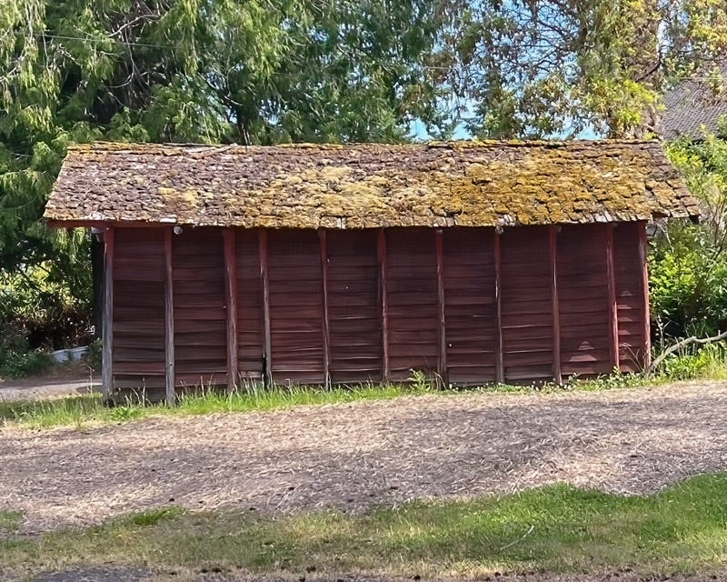 In Friday Harbor just two blocks from the ferry terminal, there was an old wooden carport. It too showed the impact of nature as leaves and moss accumulated on its roof.