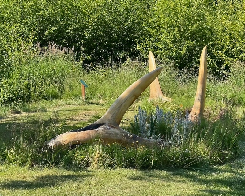 On Roche Harbor on the northern end of San Juan there is the San Juan Sculpture Garden, a 20 acre park with gardens, walking paths, a pond, and over 150 outdoor sculptures. I thought that this one was special. Three pieces of red cedar were carved to represent the dorsal fins of the resident Orcas in the area. Here is the story behind the whale sculpture: