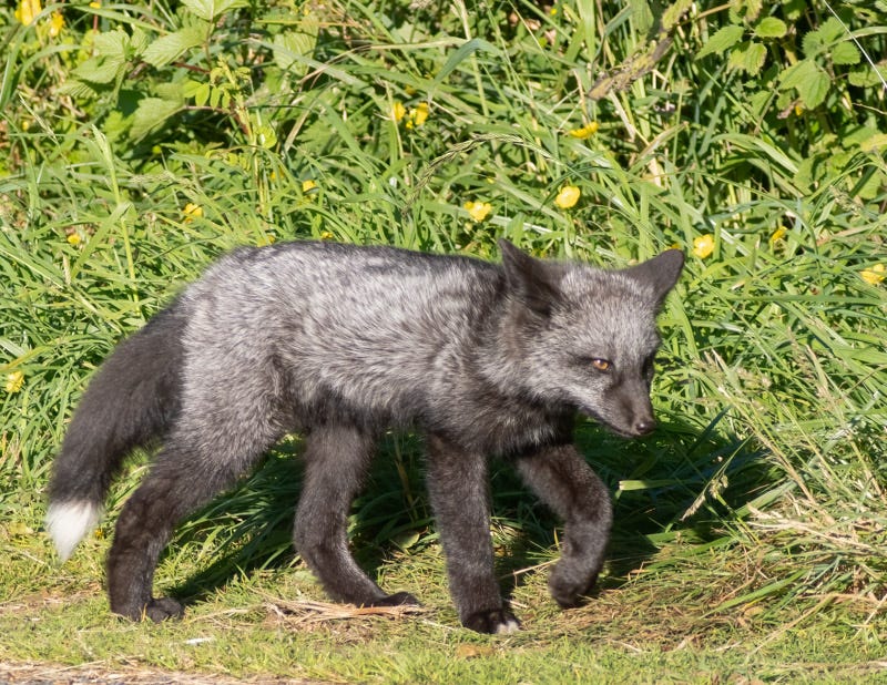 San Juan Island is known for the Red Fox population. Red Foxes were introduced to San Juan Island in the 20th century to try to control the rabbit population which had been introduced in earlier years to the island. Red Foxes are not always red, but can be orange, silver, black, or multi-colored. This kit was part of a family we watched in one spot on the island.