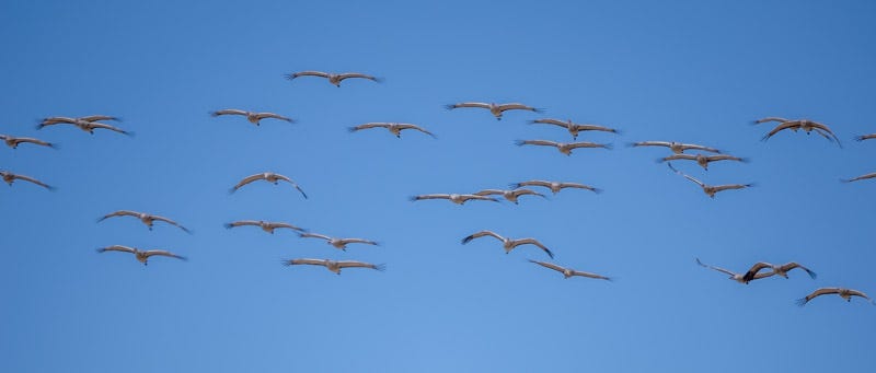 For two hours, we watched as Sandhill Cranes arrived in groups ranging in size from 50 to several hundred. The endless arrival of birds accompanied by their unmistakable sound was mesmerizing. Play this sound while looking at the photos of the cranes (click here)