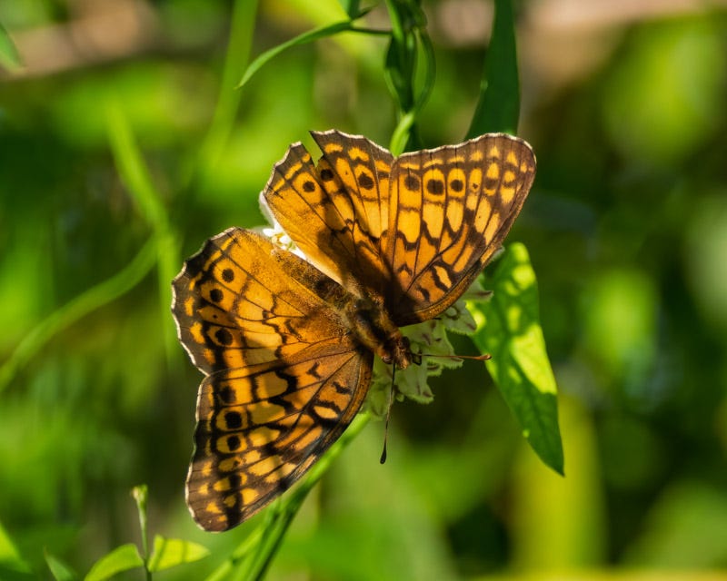 Here is yet another butterfly and it has a fancy word in its name: this is a Variegated Fritillary! Yes, it is variegated with its varied look of browns, buffs and oranges. The word Fritillary comes from the Latin word meaning checkerboard pattern.