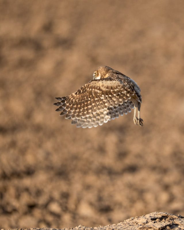 This little owl got way off the ground before settling down again.