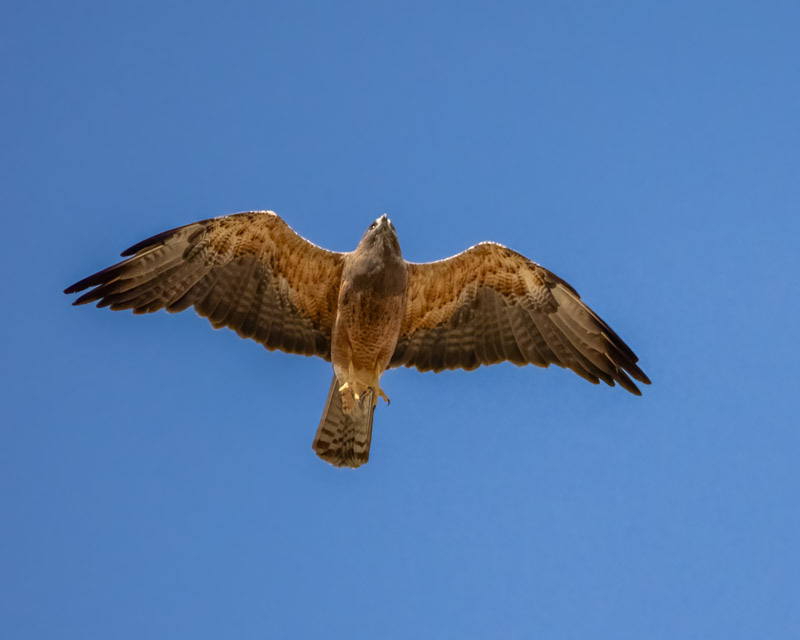 I'm not sure why this bird was holding its feet open. Swainson's Hawks will catch insects in the air and may dive from a soar to capture insects or other prey on the ground. I didn't see this bird attempt that but it was unusual to see its feet wide open in the air.