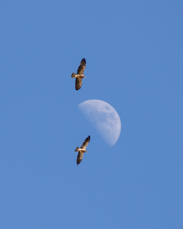 Two of the typical looking light morph Swainson's were soaring near the half-moon.