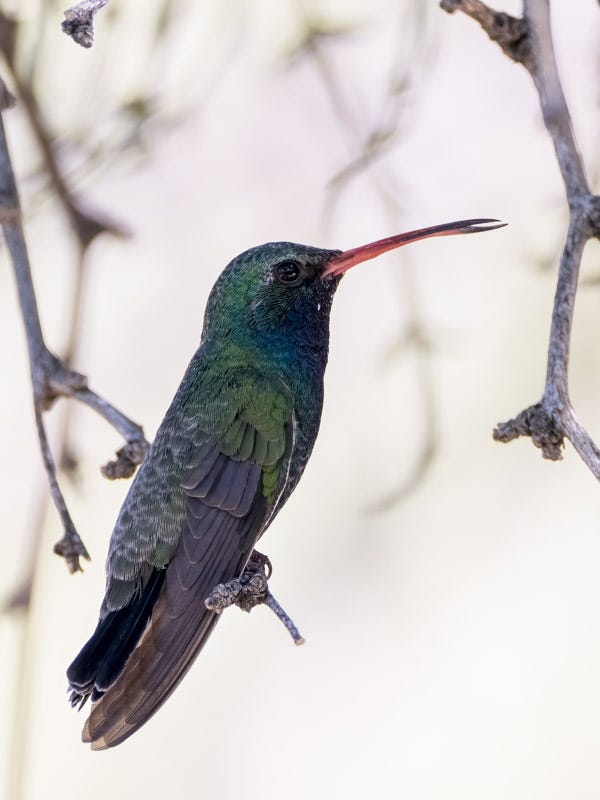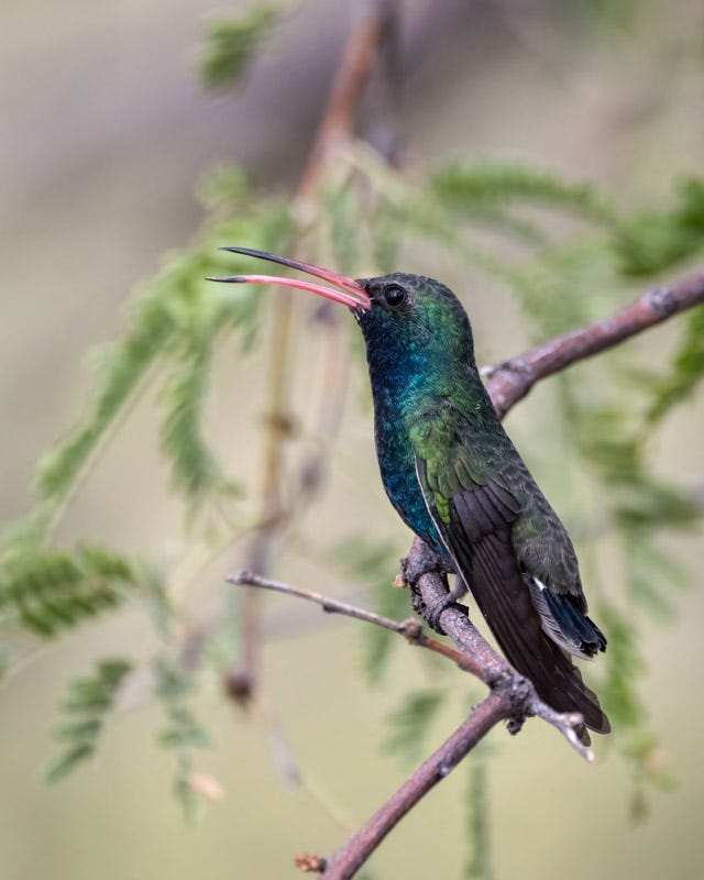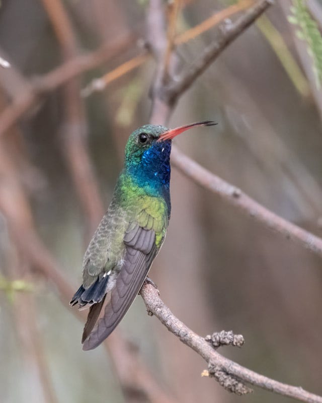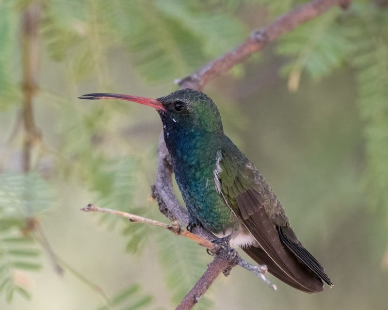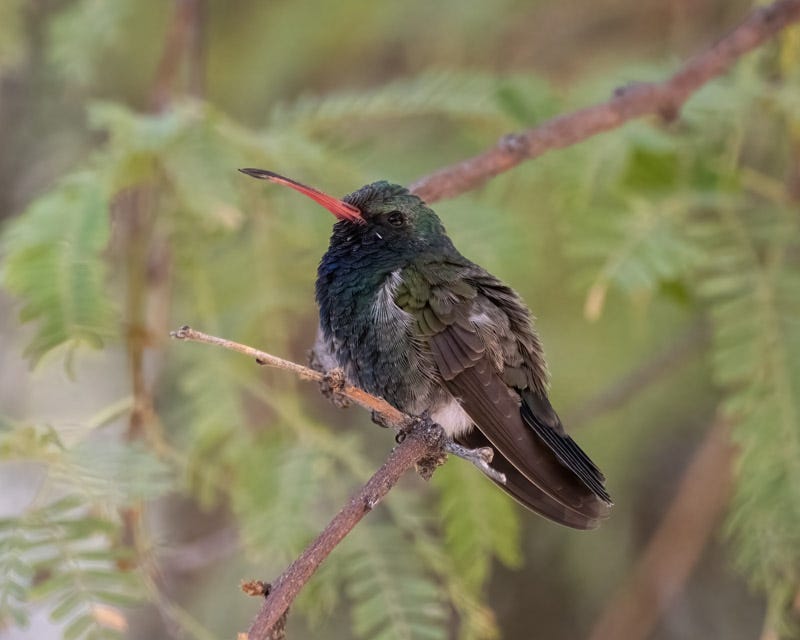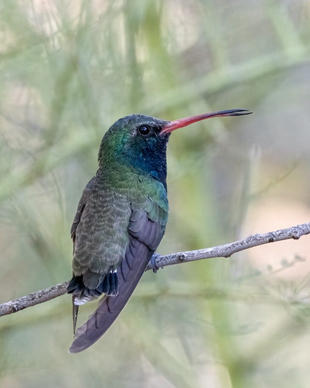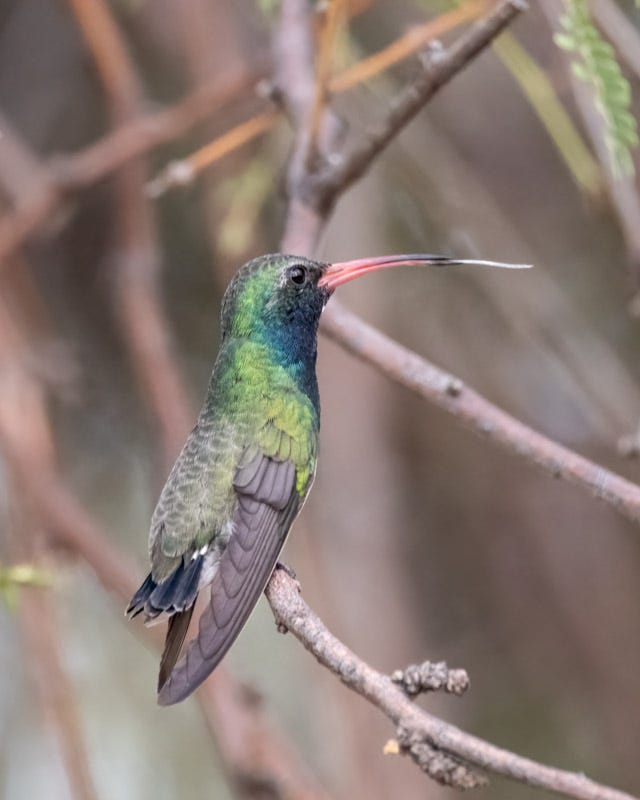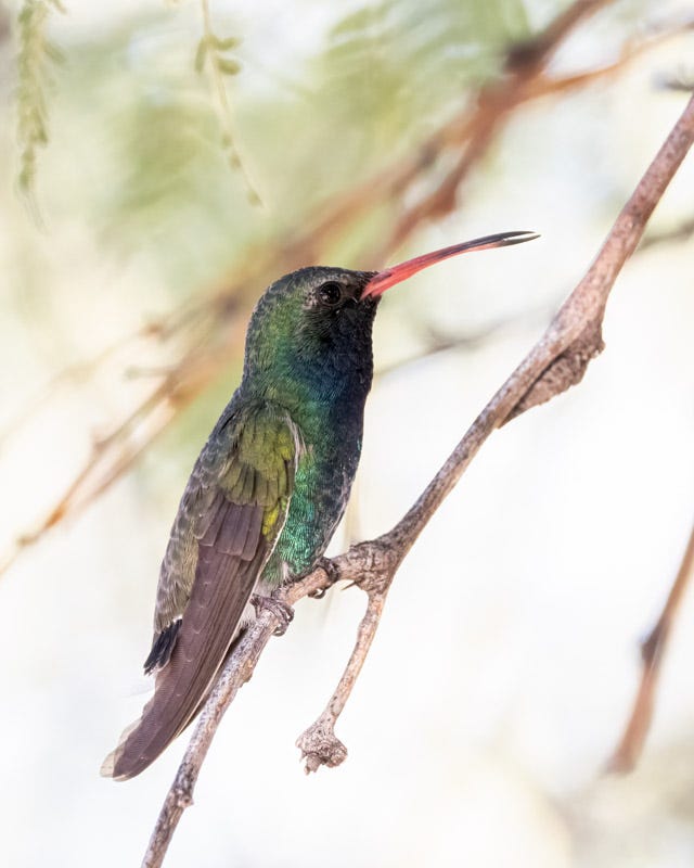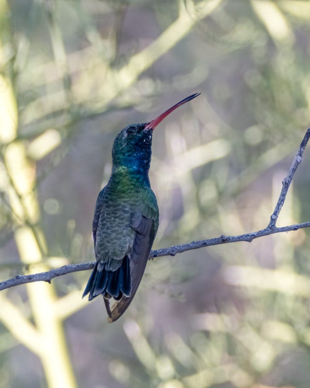 For almost two weeks I continued looking for the Broad-billed hummingbird with the missing tail feathers. At times, it almost seemed as if it understood my interest. Still, it never revealed its secret. How did he lose its tail feathers and would they ever grow back?