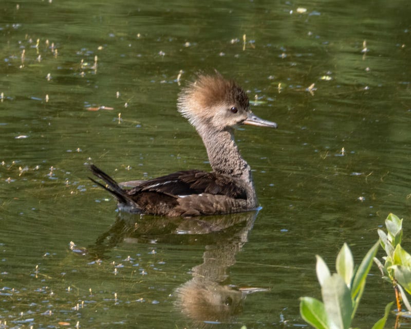The mother Hooded Merganser was close by, never more than a few yards from her little ones. While we do see a few Hooded Mergansers in southern Arizona during the winter, they breed up north. Birdnote shares a bit about their nesting habits.