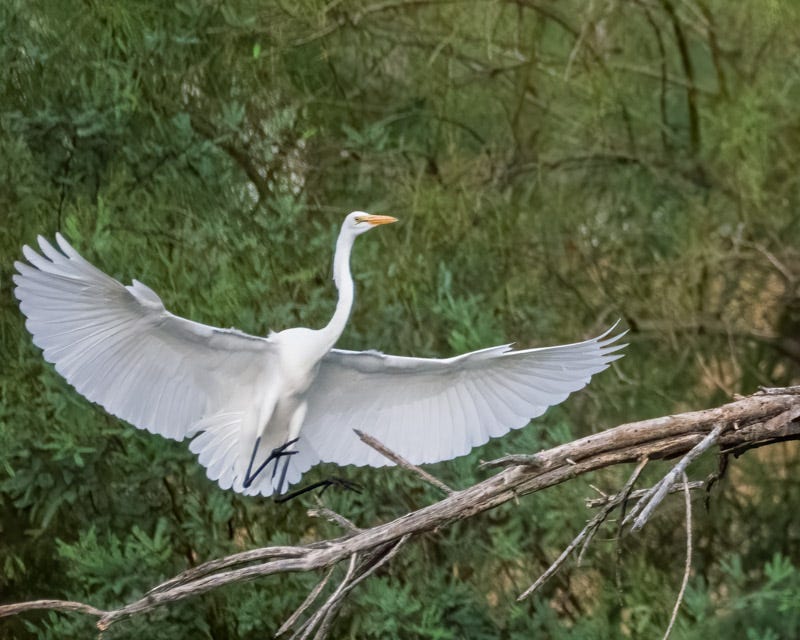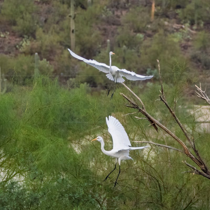 When landing, the Egrets open their wings in order to slowly brake in the air. They are very graceful for their size. Great Egrets can be seen in Tucson year-round but are more likely to be seen during the winter. Great Egrets are found on all continents except for Antarctica.