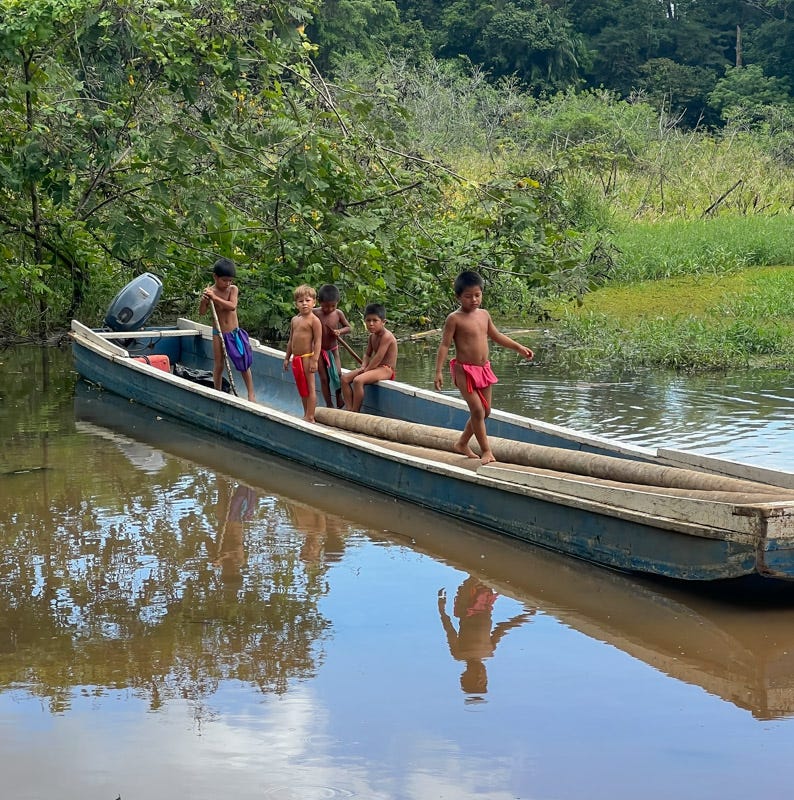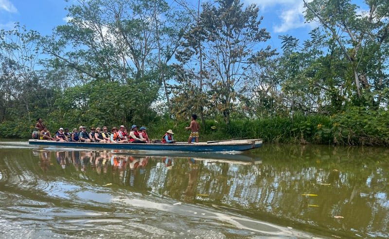 To reach the village, we traveled by motorized dugout canoes, a trip that lasted about a half hour.