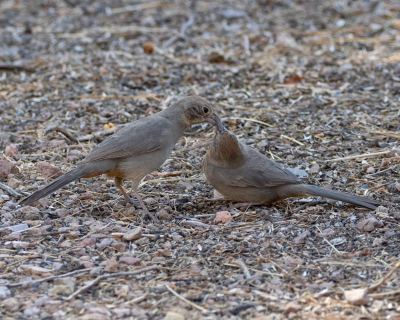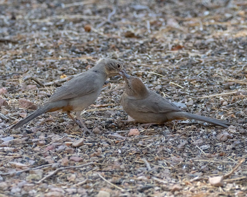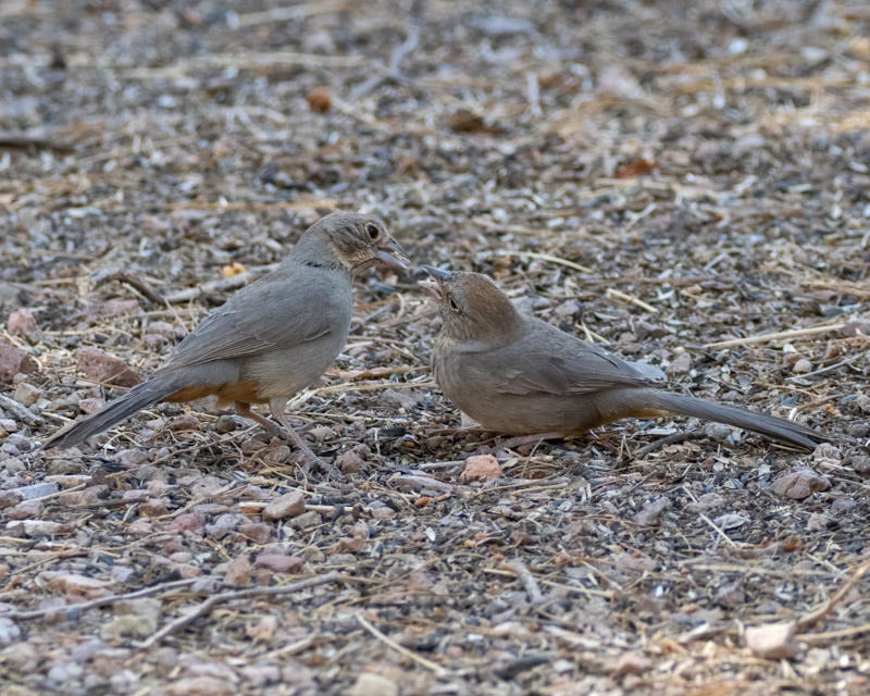 The Canyon Towhee spent much time feeding a newly fledged youngster.