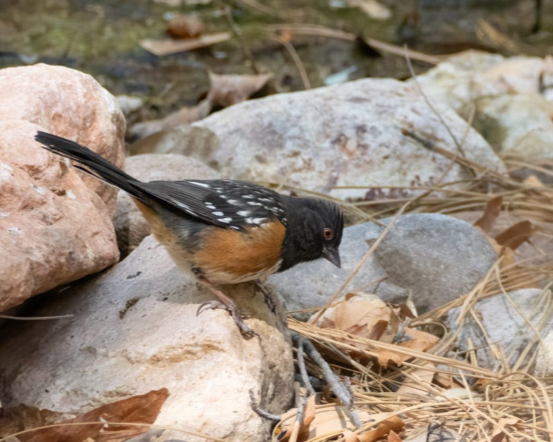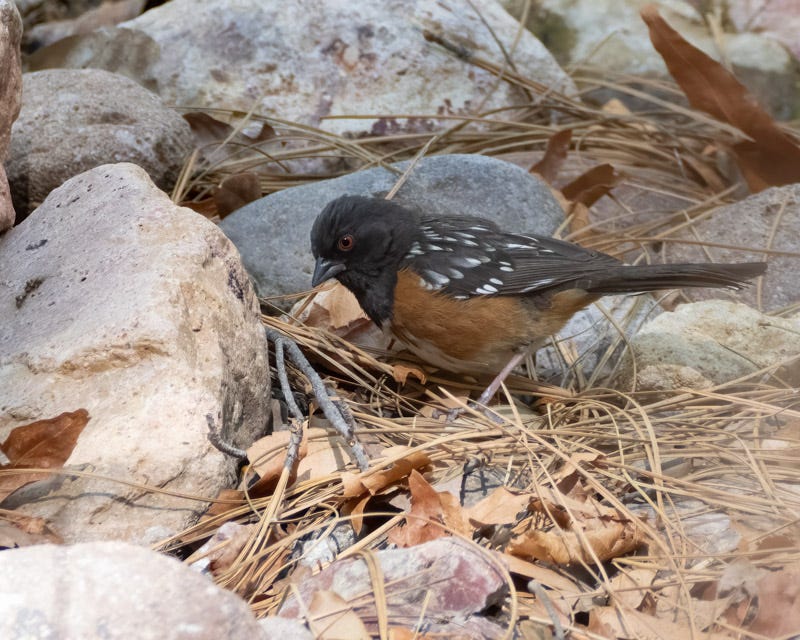 The fourth and final Towhee species in southern Arizona is the Spotted Towhee. This one looks similar to the Eastern Towhee for which the group was named. Compared to the Abert's and Canyon Towhees (our desert specialists), the Spotted is more of a mountain species.