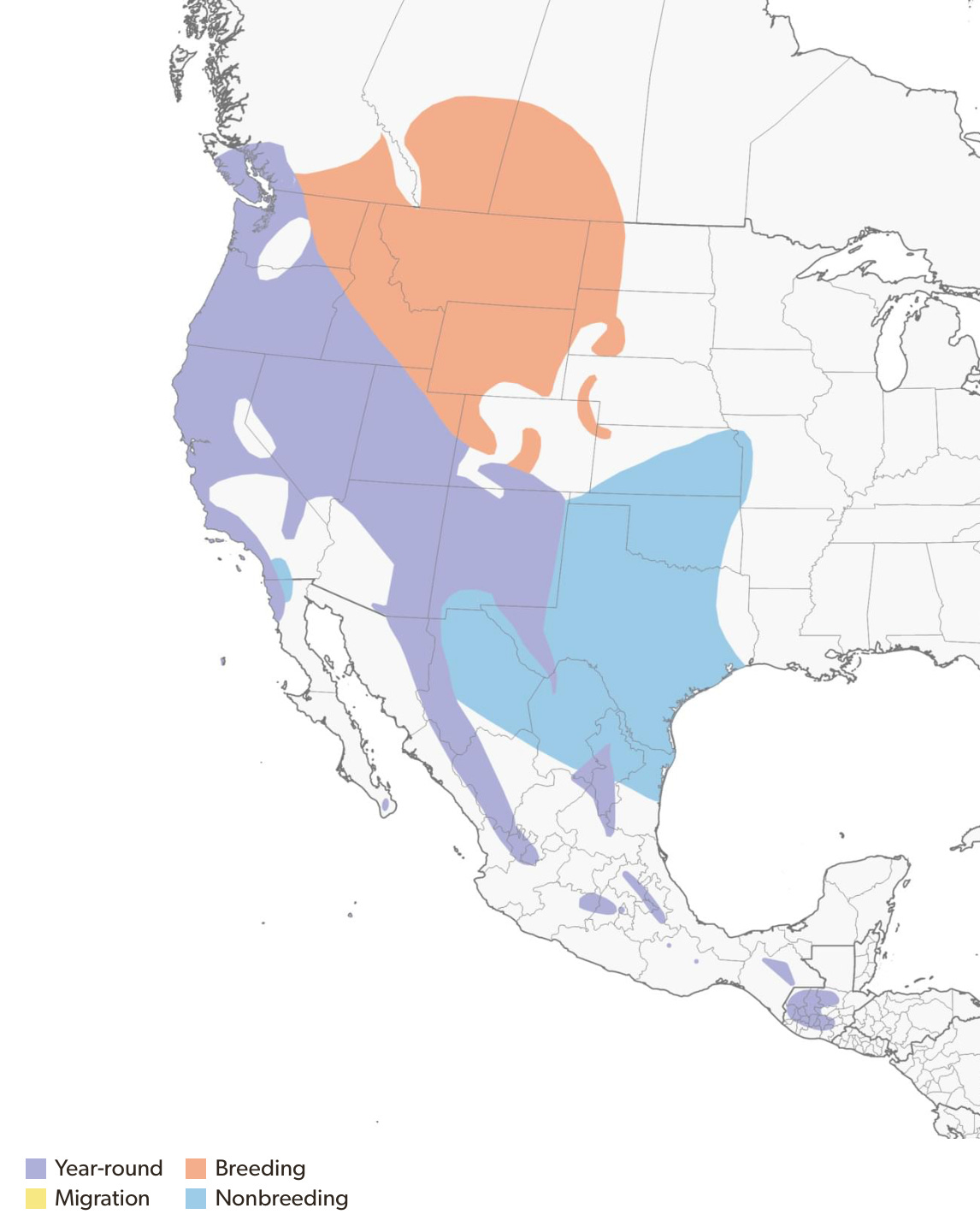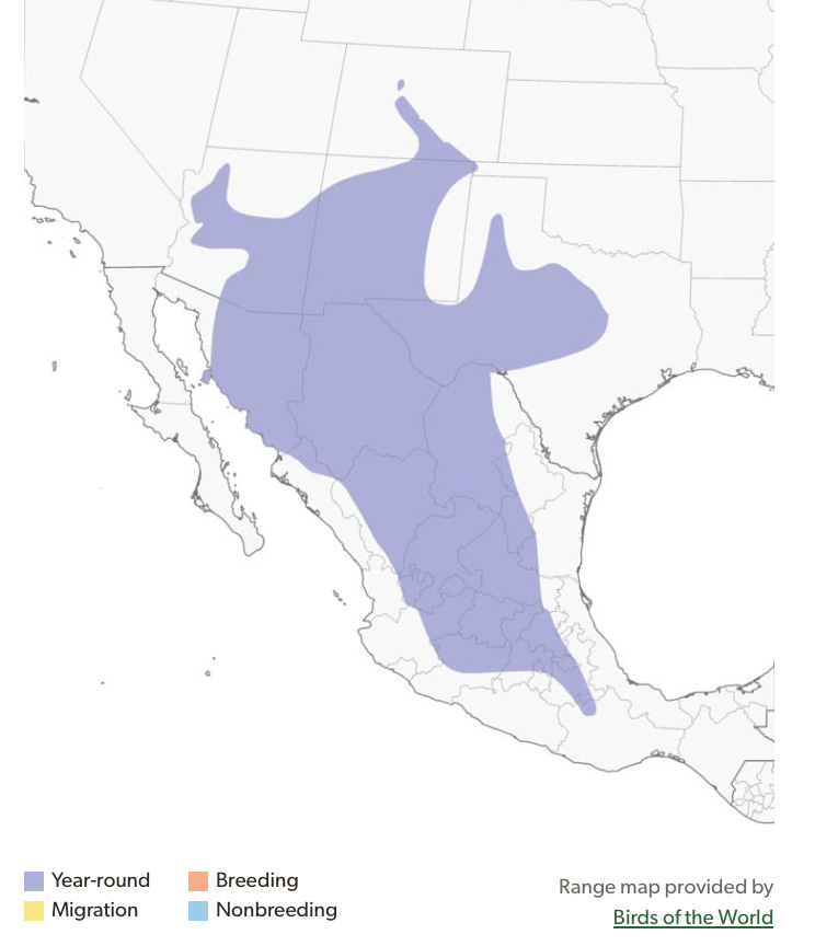 Abert's Towhees are residents of Southwestern Deserts, found mostly in Arizona. Pairs often stay together for life, and often when you see one Abert's Towhee, the other is nearby. Accordingly, some local birders refer to the Abert's as a "two-wee"! (All of the range maps in today's newsletter are courtesy of the Cornell Lab's "Allaboutbirds" site.